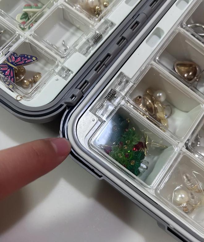 一个首饰收纳盒都要大几十,但是用渔具收纳盒的话,价格特别便宜,只需要十几块钱就能搞定。