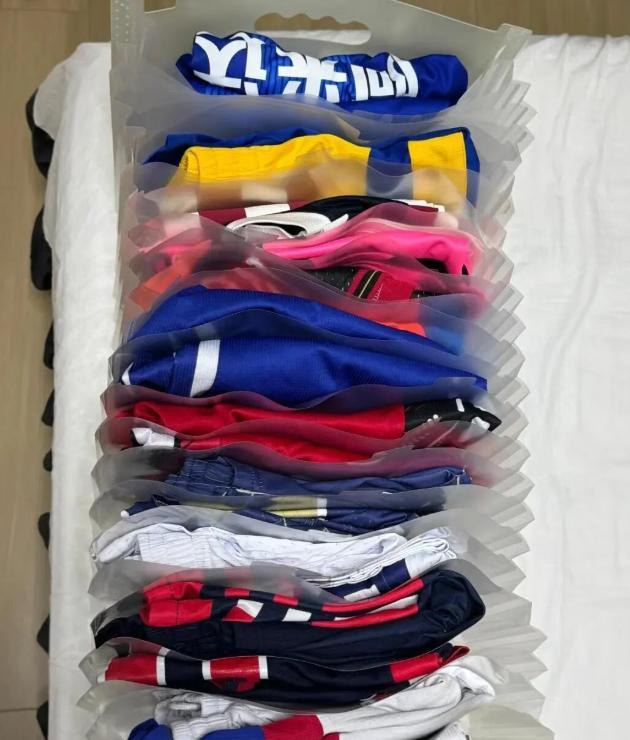 把这些衣服,叠一叠,可以放在风琴文件夹里面,衣服可以分类好,而且找起来也方便。