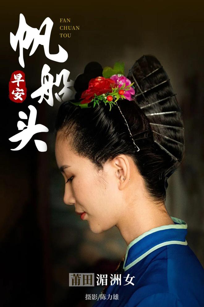 其中,莆田湄洲女的“帆船头”堪称其中典范,头顶圆盘发髻象征船舵,红头绳代表缆绳,横向银钗是船锚,后脑勺扁帆髻似船帆,波浪形发卡喻为船桨,整套发型恰似一艘完整的帆船,呼应着“帆船头、大海衫,红黑裤子保平安”的民谣。