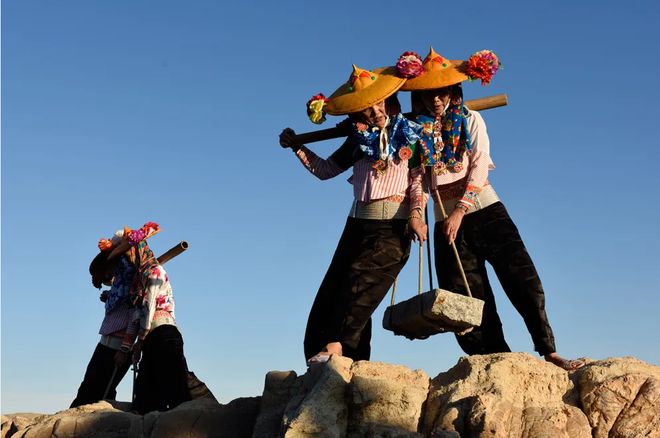 同样扎根于海滨生活的惠安女头饰,则展现着劳动创造的美学。黄斗笠配花头巾,将面部严实地包裹起来,仅露出五官,被戏称为“封建头”,实则是应对海边强日照、多风沙的实用设计。