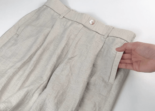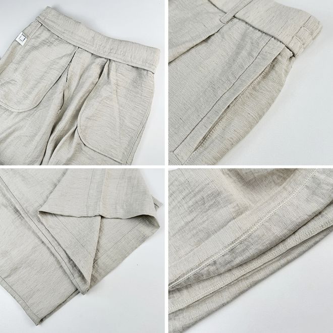 选品组同事还特地拿它跟网上那些价格不一样,但看着差不多的棉麻裤回来对比,发现面料品质真的差好多:
